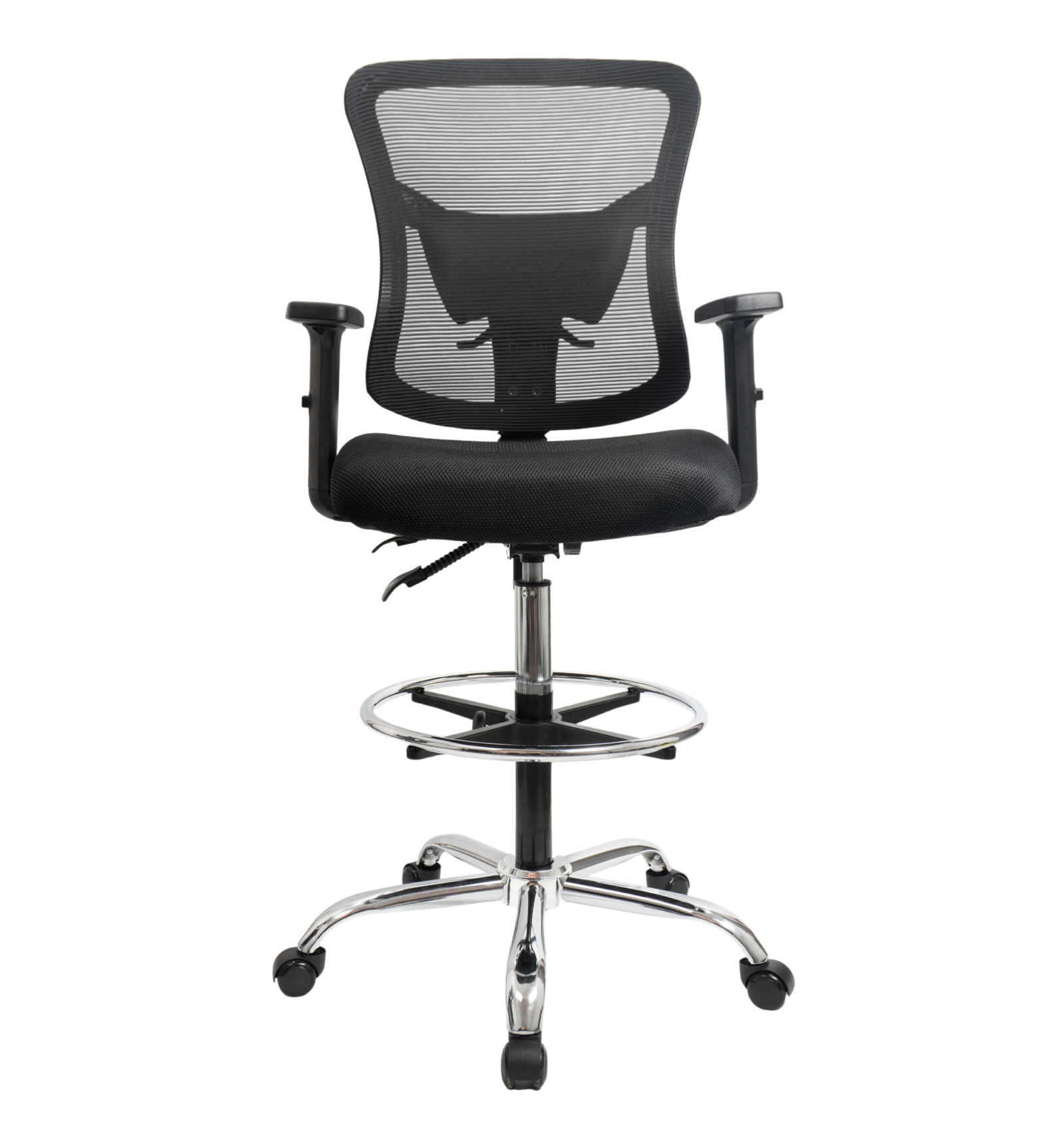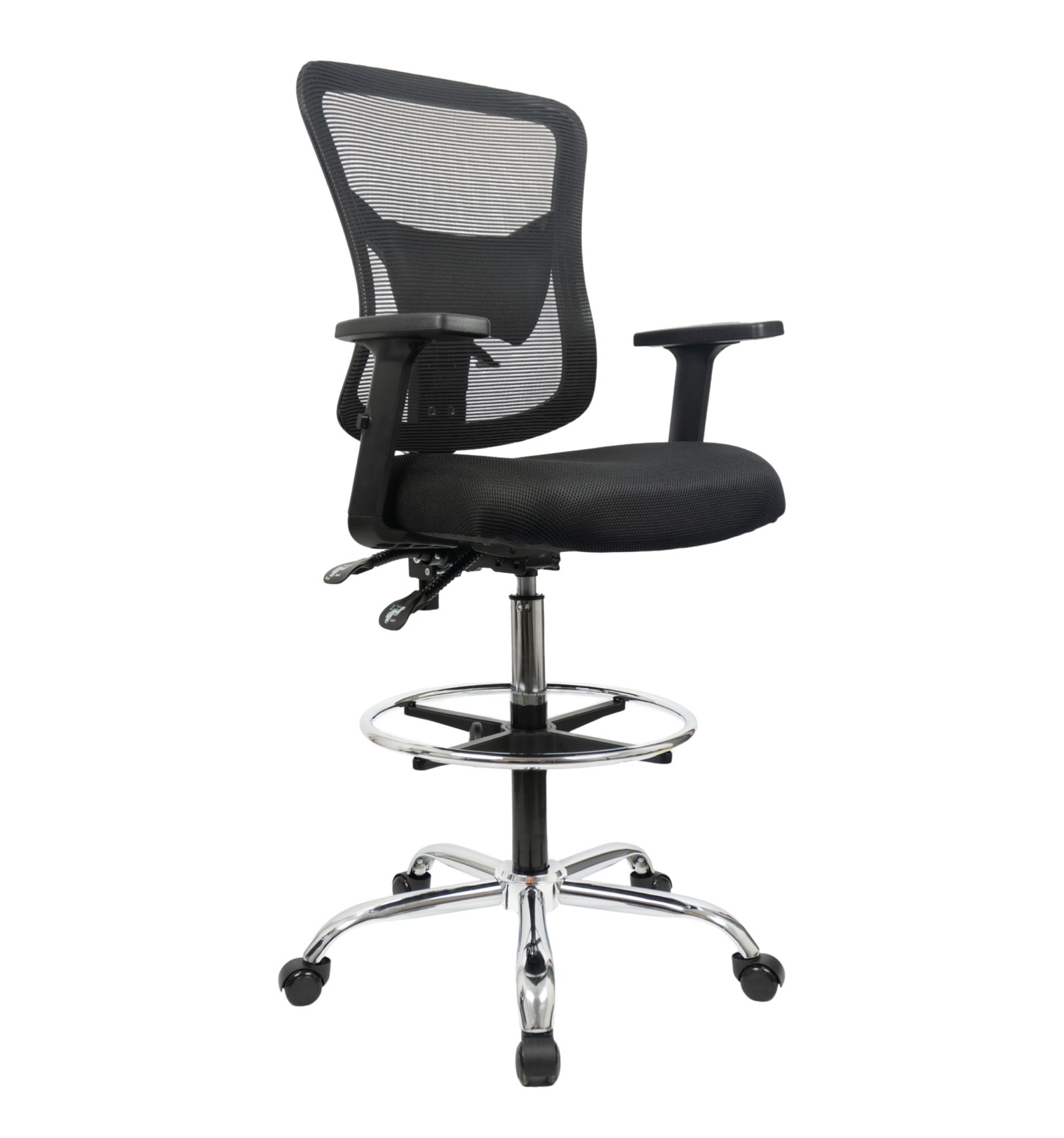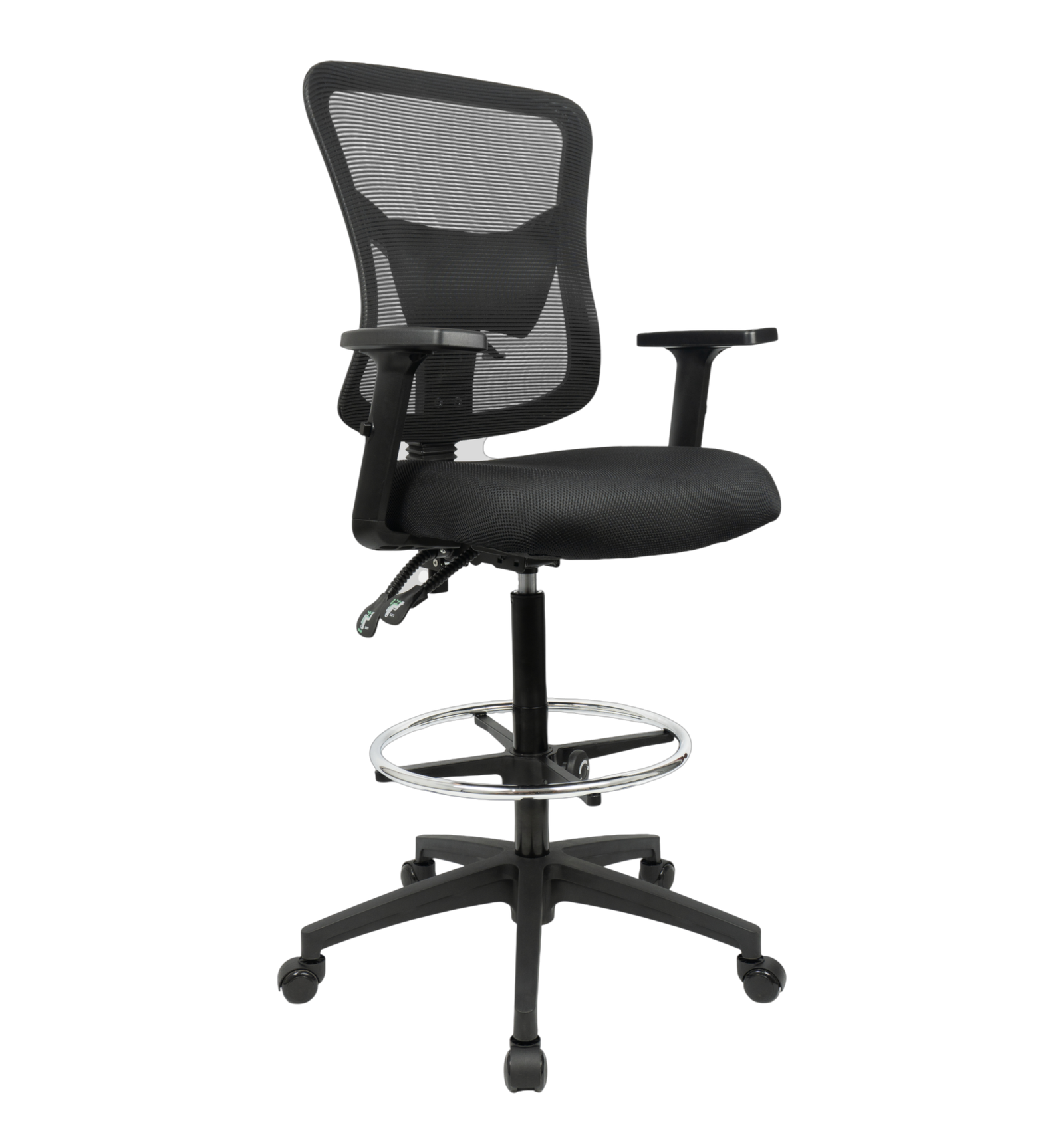 Silla con respaldo anatómico regulable en altura y con soporte lumbar regulable.