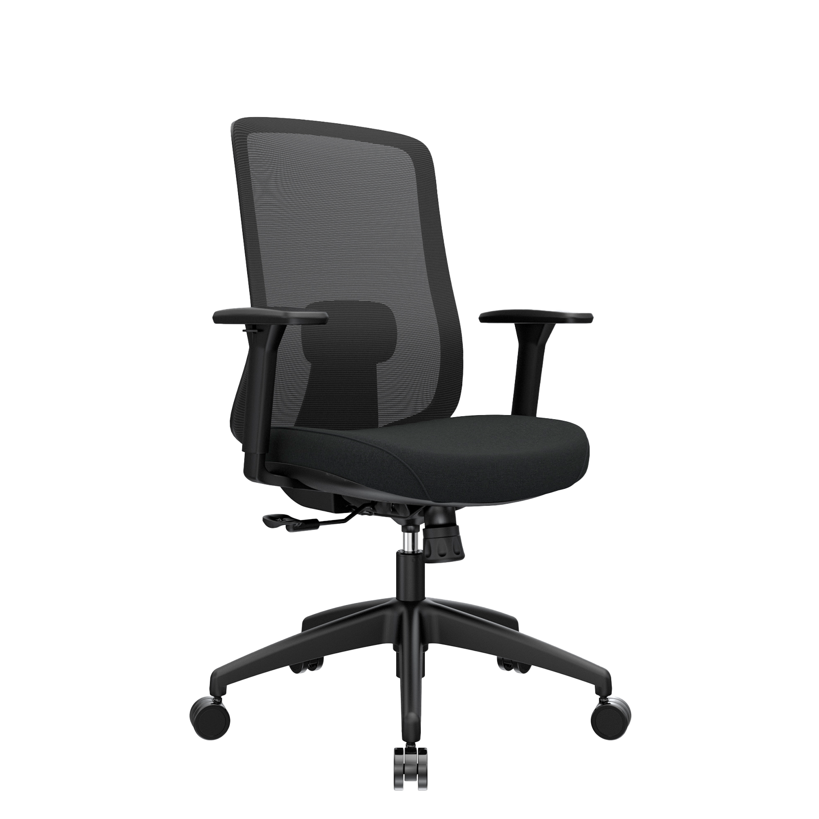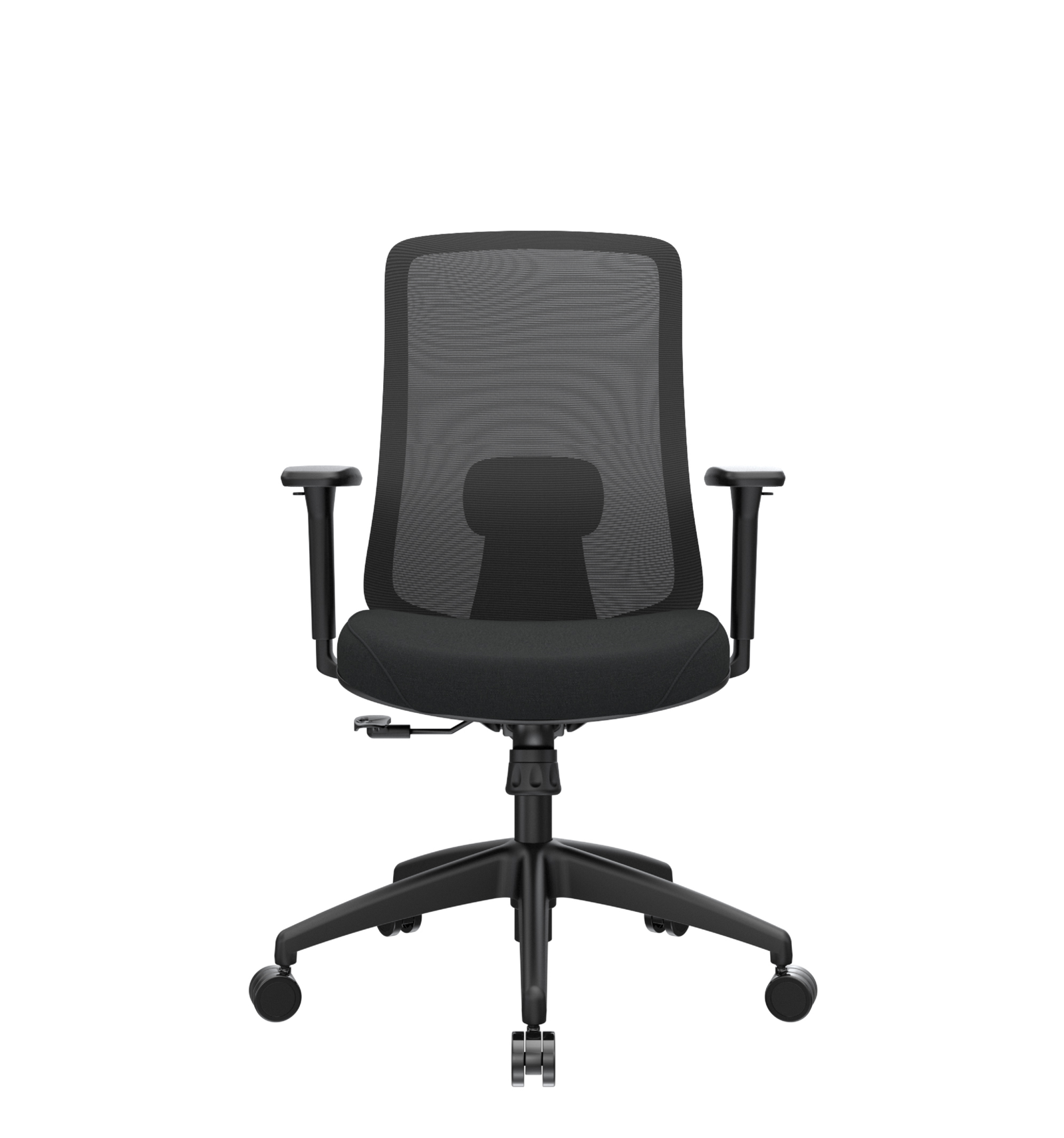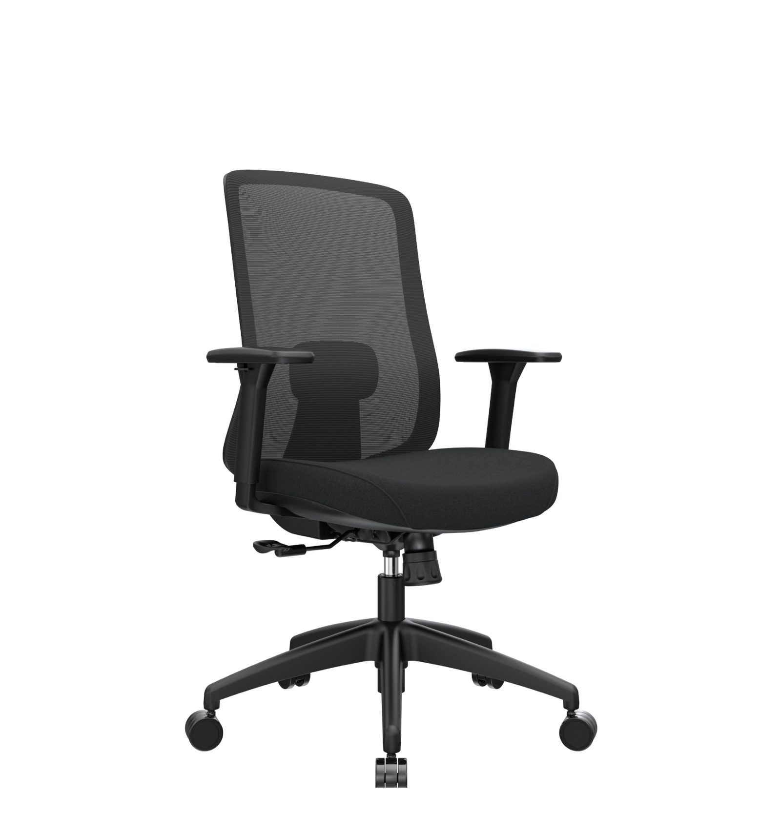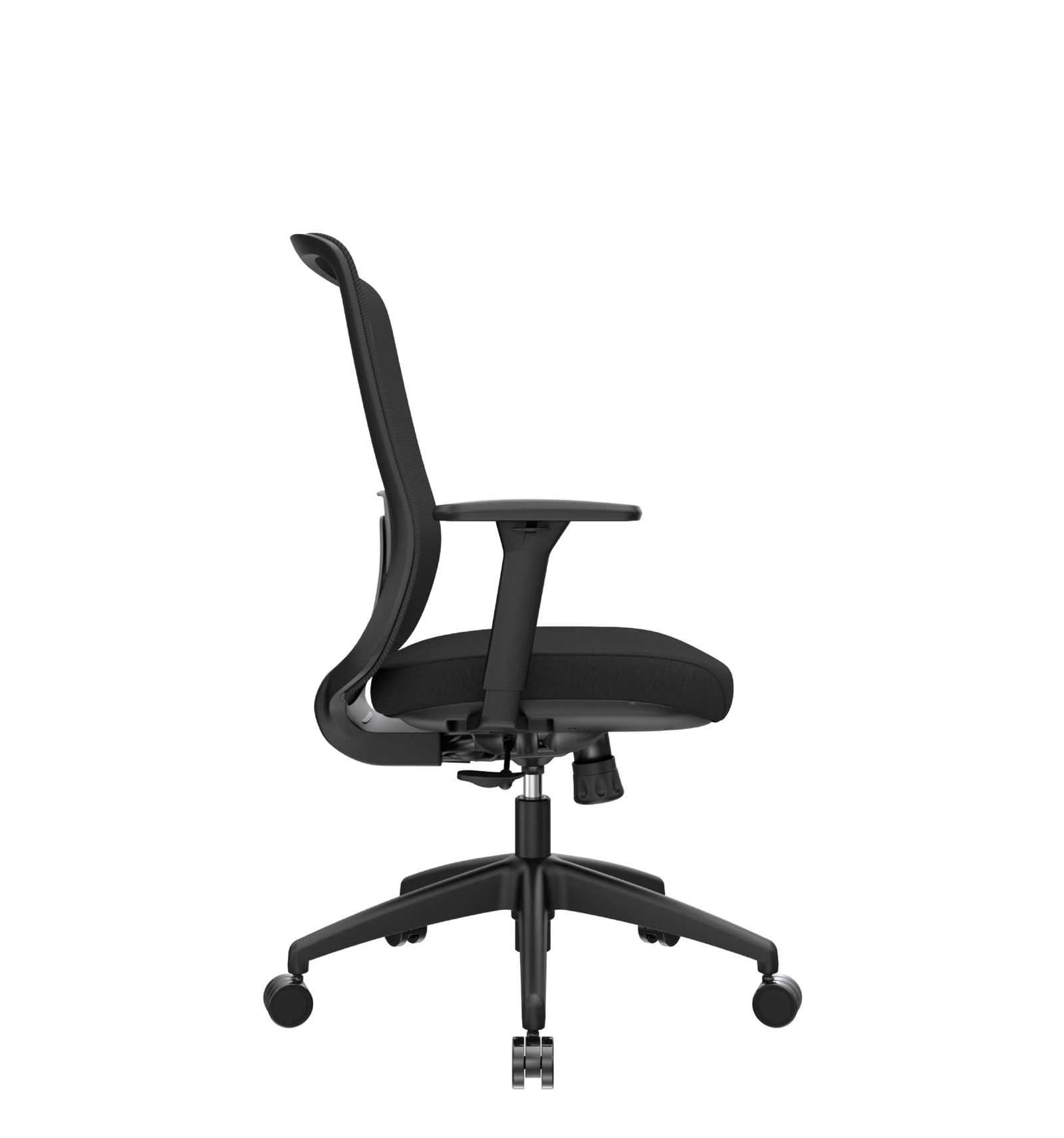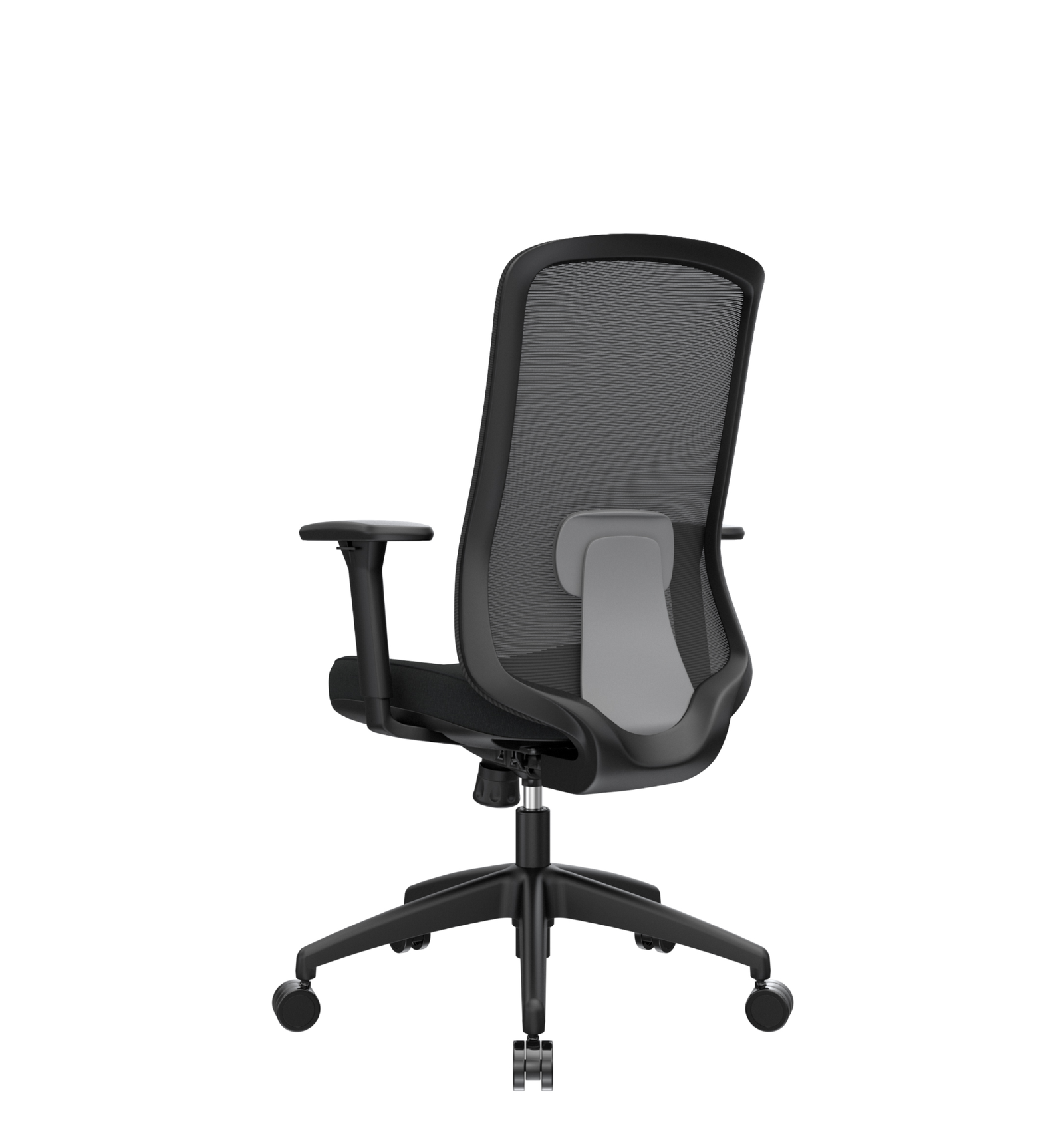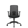 Silla de diseño premium, espaldar ergonómico con soporte lumbar regulable en altura.
