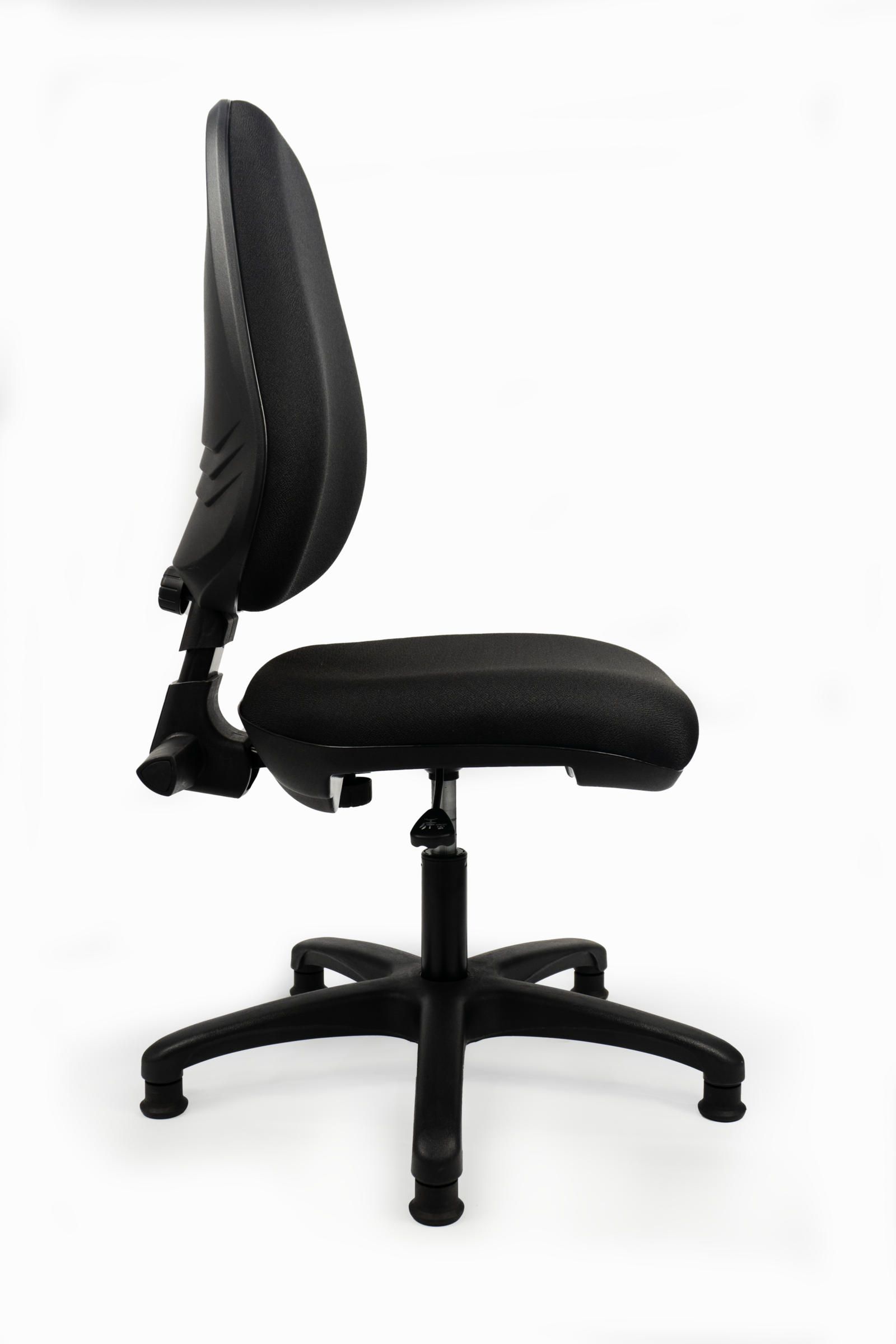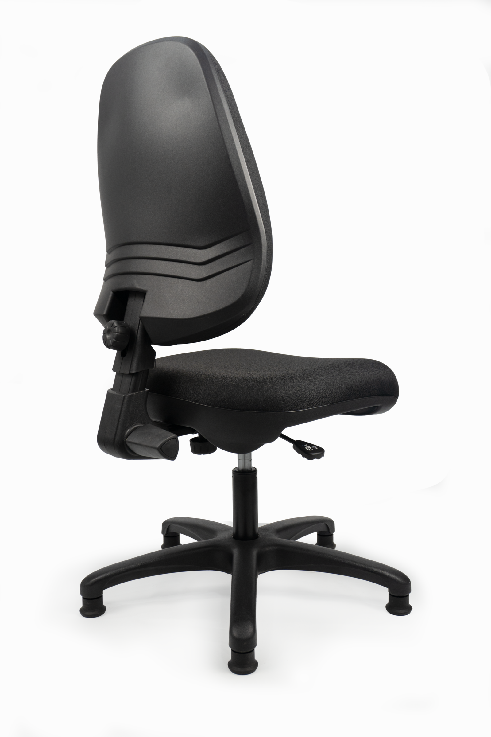 Espaldar acolchado y tapizado regulable en altura, profundidad y reclinable.