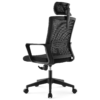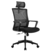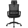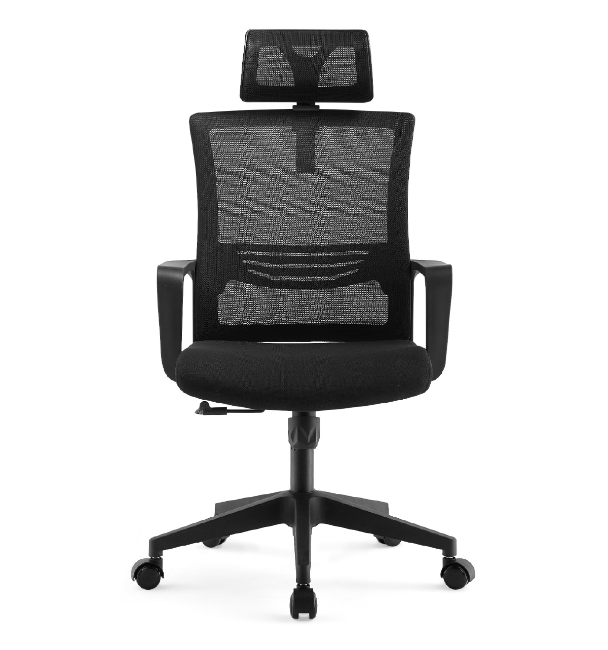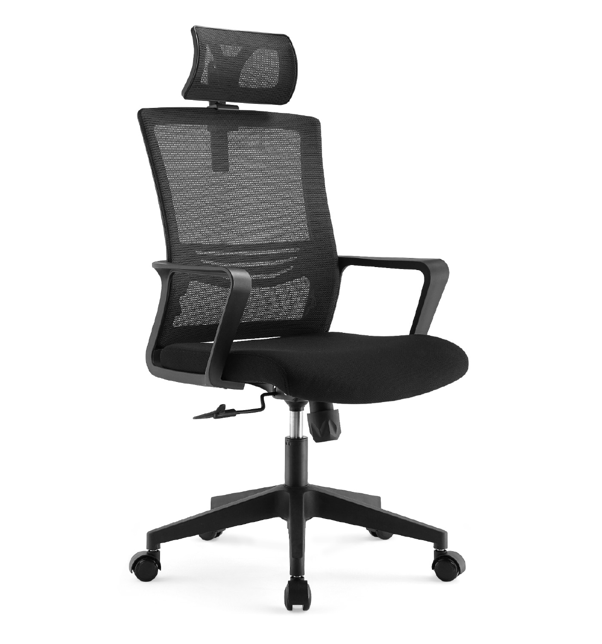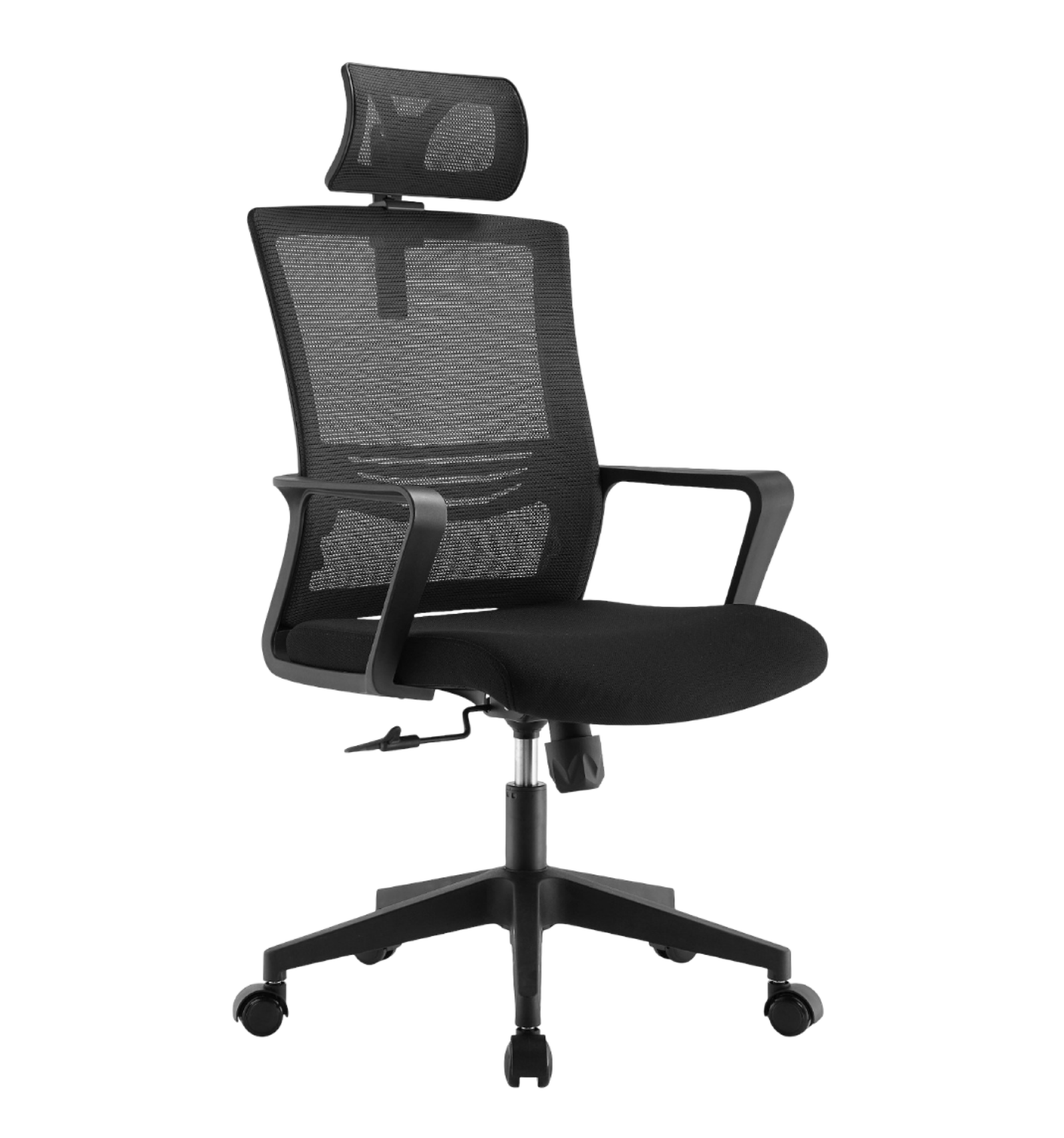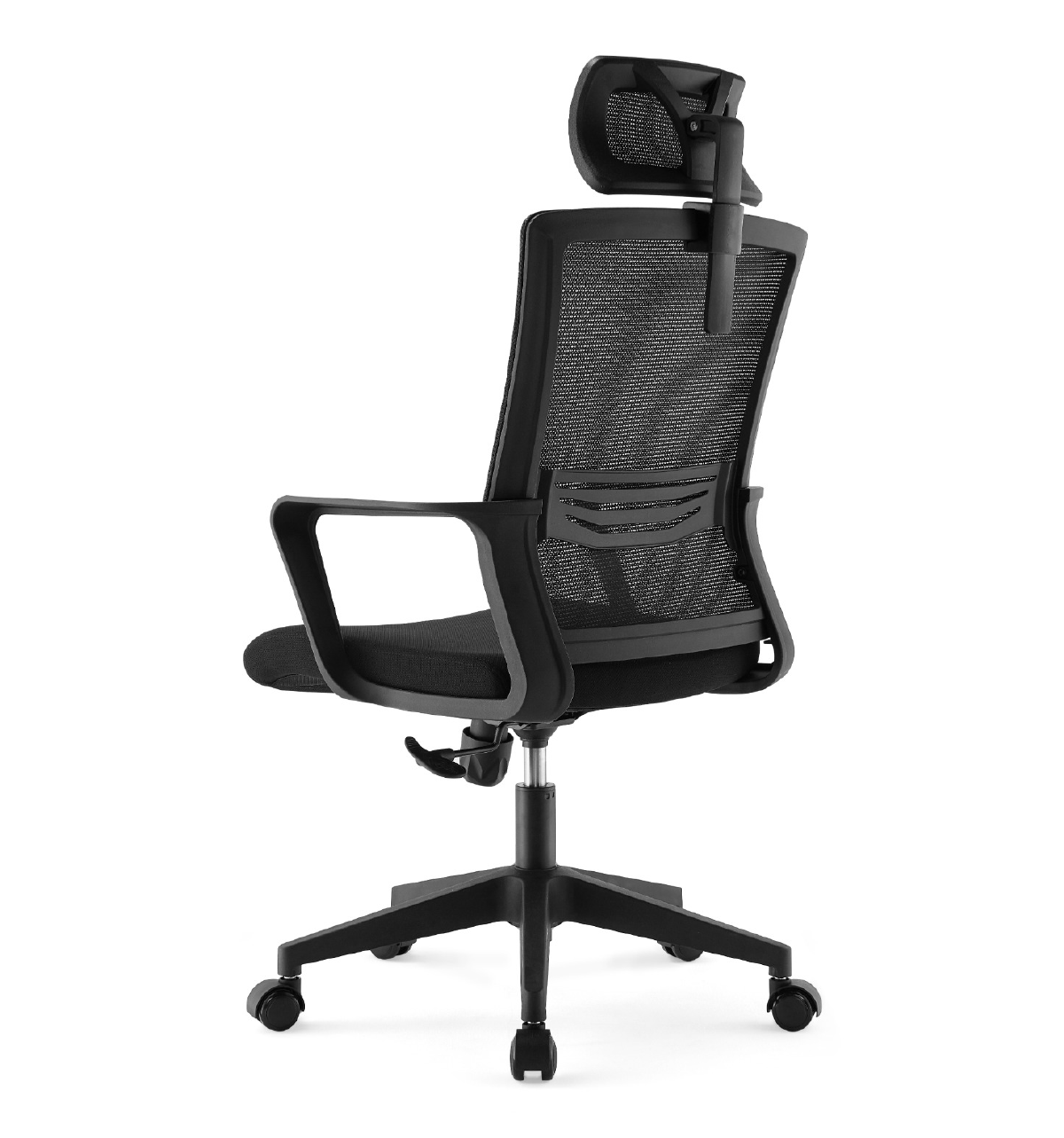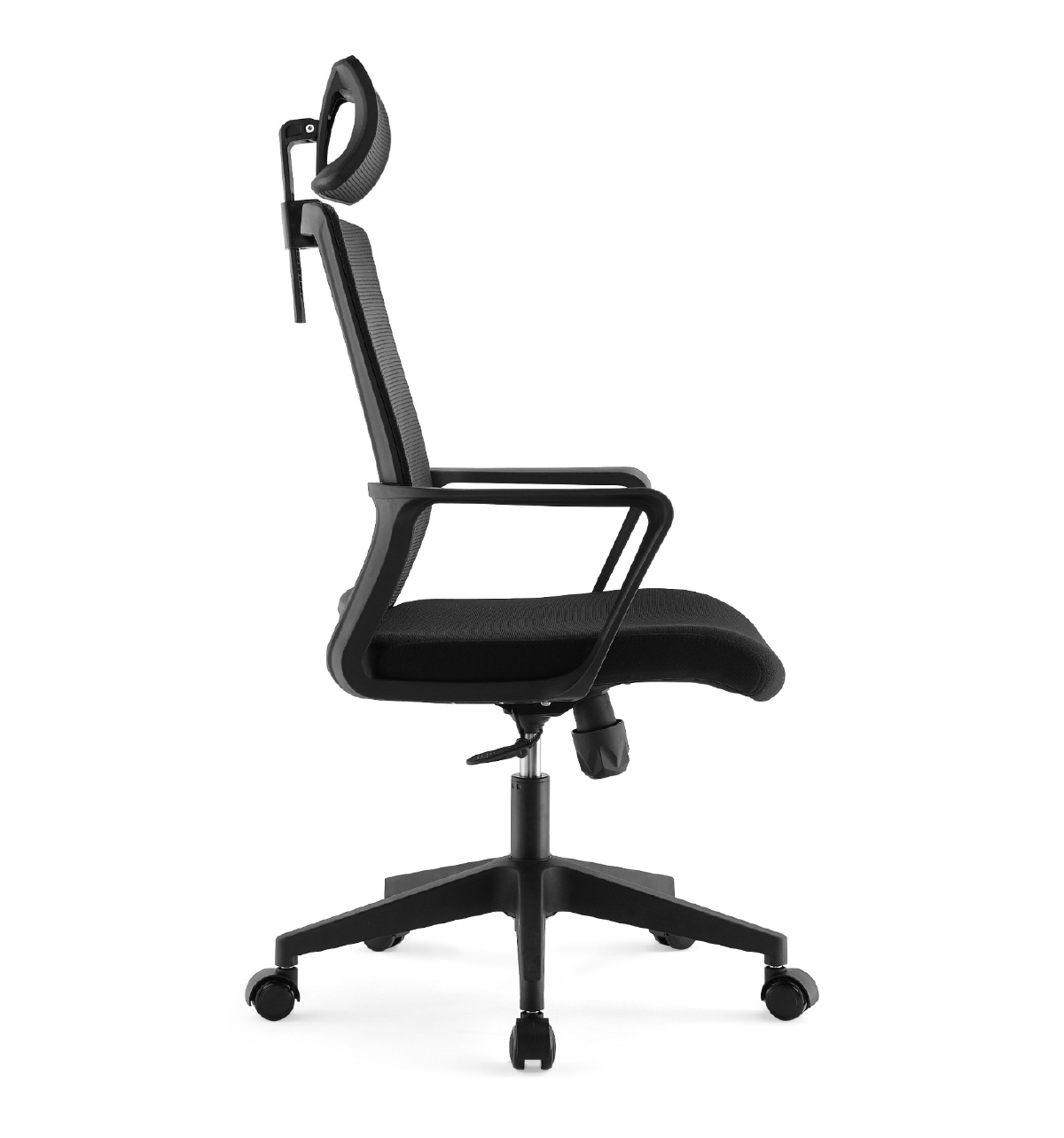 Cabecera regulable en altura y ángulo. Respaldo en polipropileno tapizado en malla.